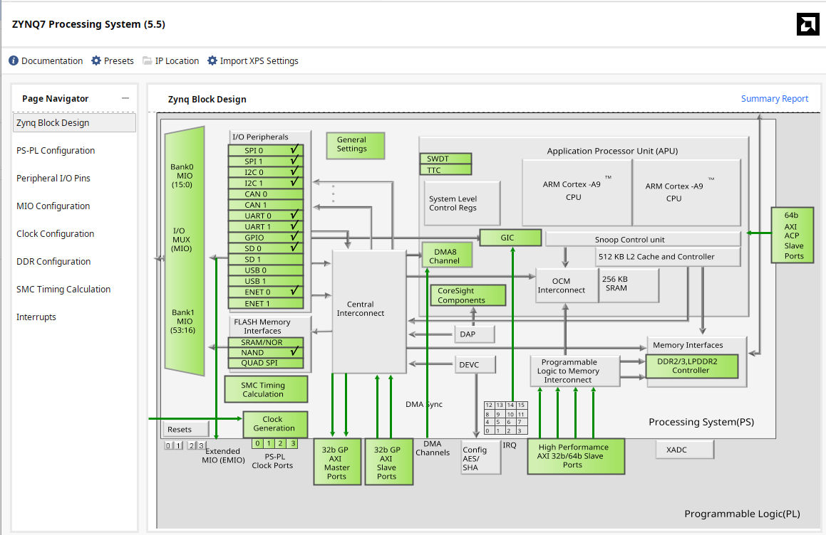 以下はProcessor Systemの設定画面です。✔のはいっているI/O Pripheralを有効にしています。