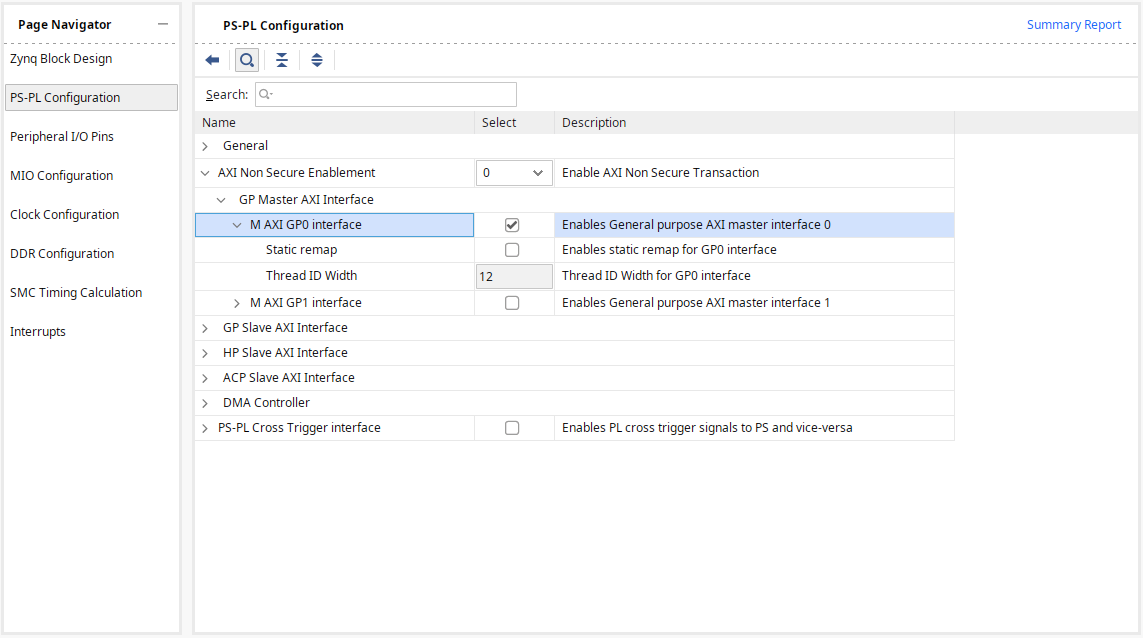 PS-PL ConfigurationでAXI_GPIOを接続するためにPSの設定でAXI Masterを有効にします。