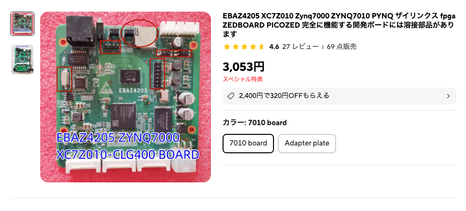 2025年末時点でもAliexpressで「EBAZ4205」で検索すると3000~4000円程度で販売されています。