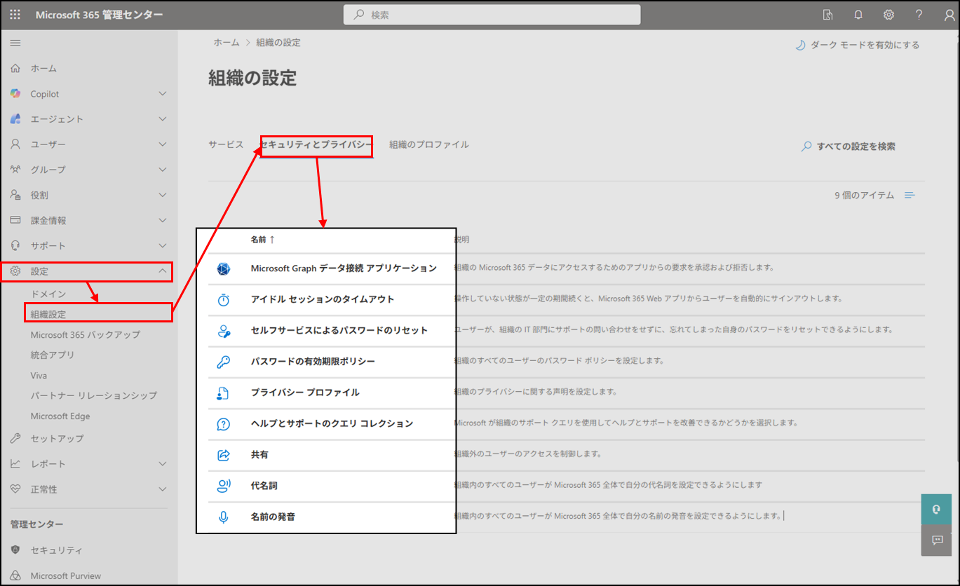 ふむふむ、『Microsoft 365管理センター→組織設定→セキュリティ&プライバシー→ベースラインセキュリティモード』から設定すると…