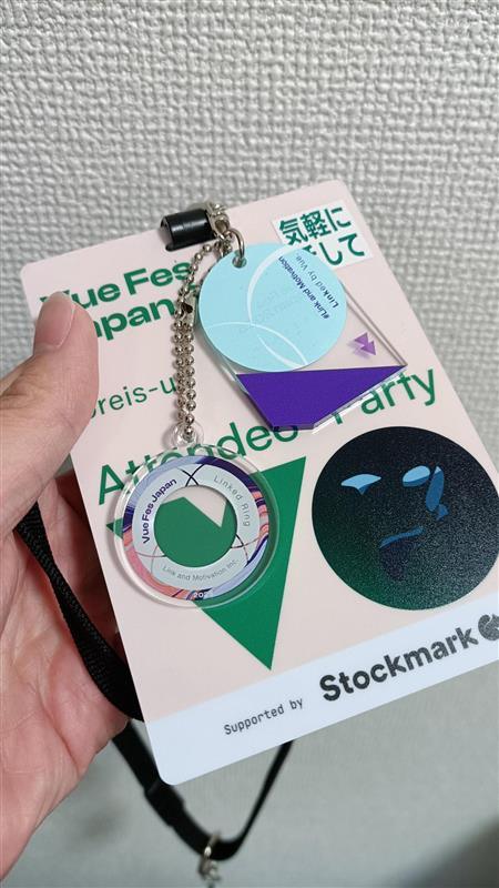 自分でアップロードしたアバターと名前が印刷されているネームカード (詳細: vuefes.jp) を取って奥に進みます。