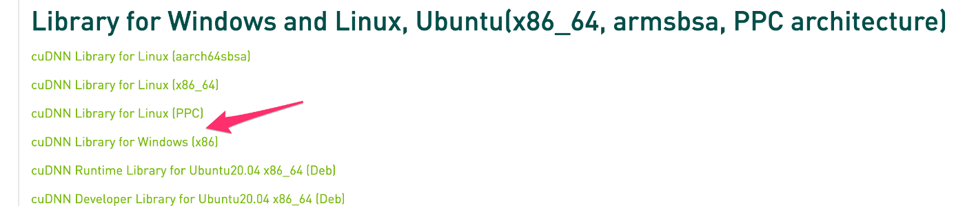cuDNN Library for Windowsを選んでダウンロードしましょう。