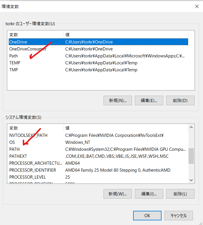 私はあまり分からなかったので、ユーザー変数のPathにも一応追加しました。