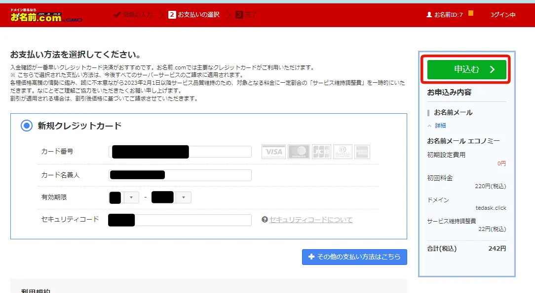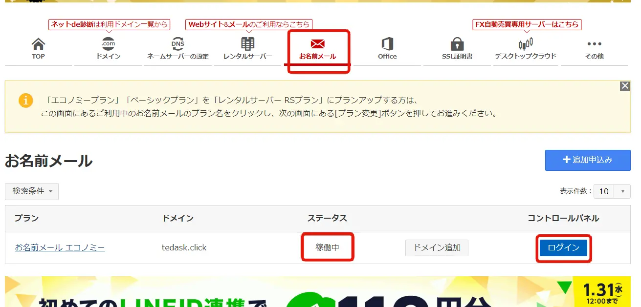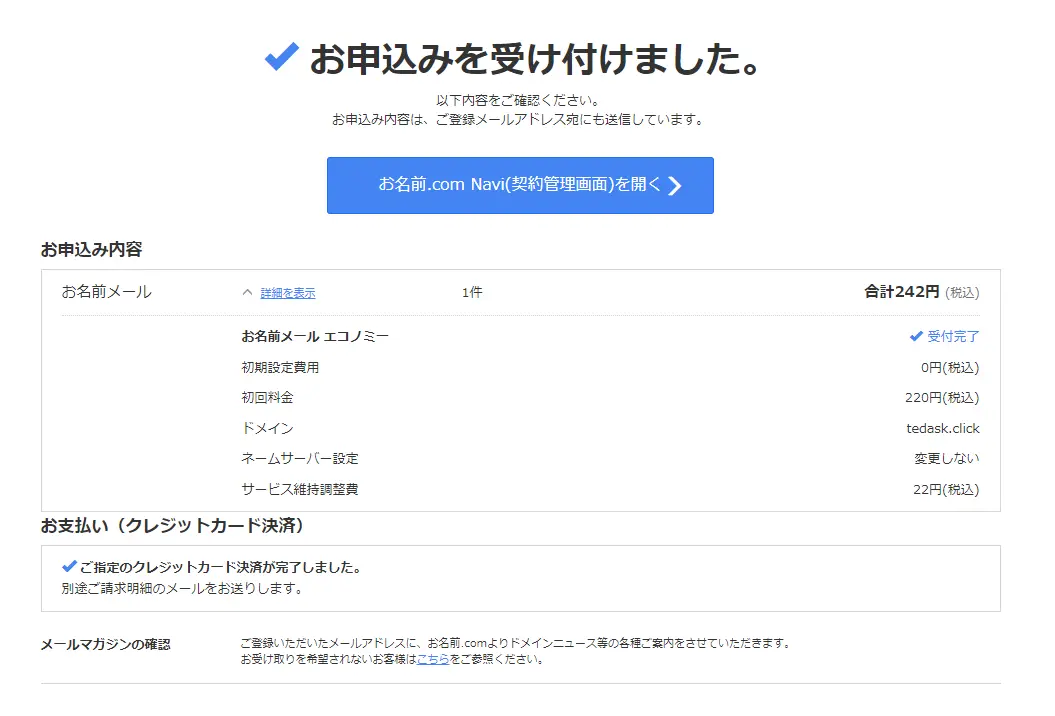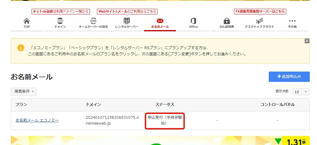 もしお名前メールをまだ契約していない場合は、使えるまで少し時間が掛かるので、先にお名前メールの契約をしておくことをおすすめします。(記事でもやり方は書いています。)