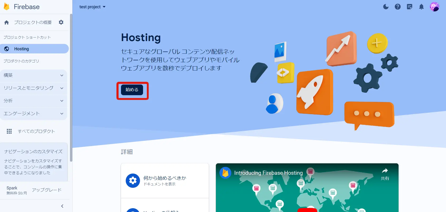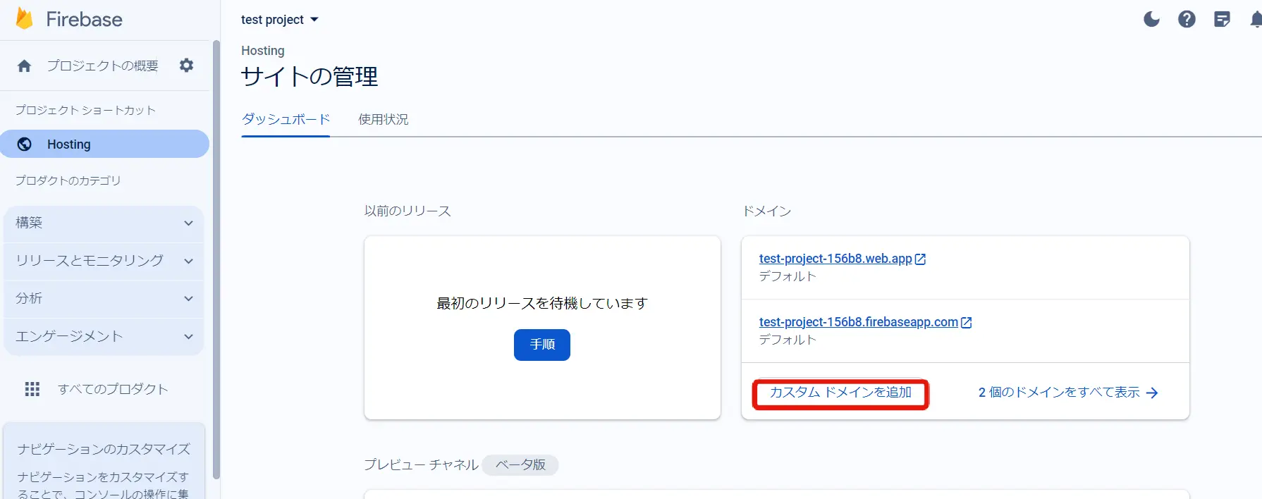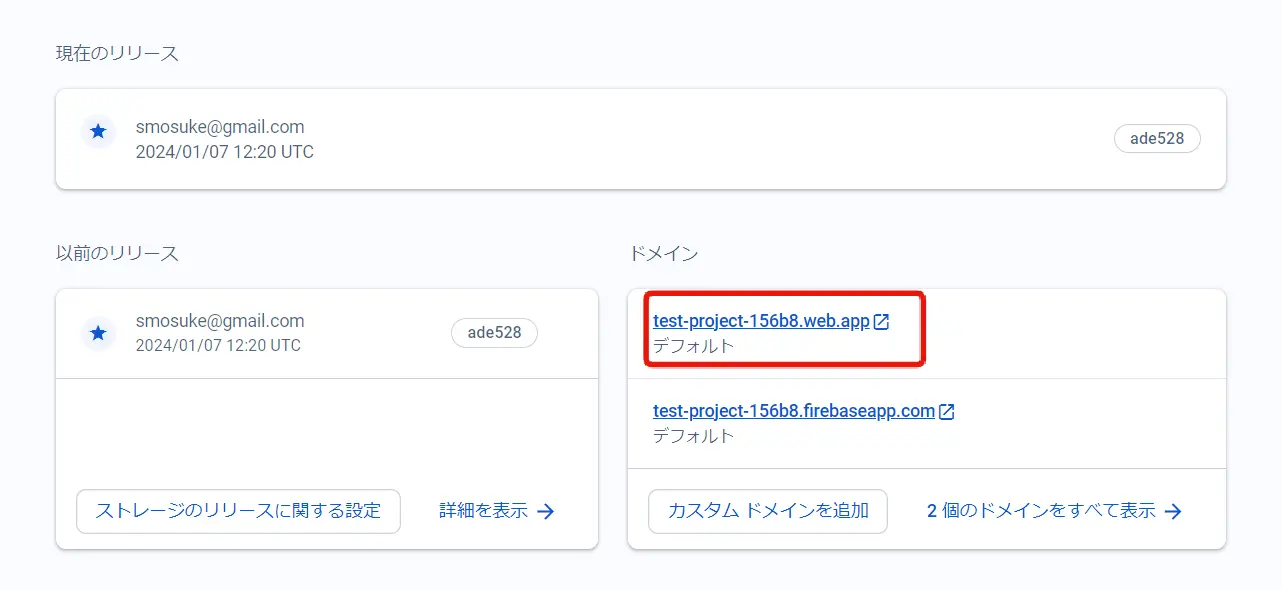 もし独自ドメインを使わない場合でも、Firebaseが自動でサブドメインを生成してくれますので、試験用のサイトであればカスタムドメインの設定などは不要となります。
