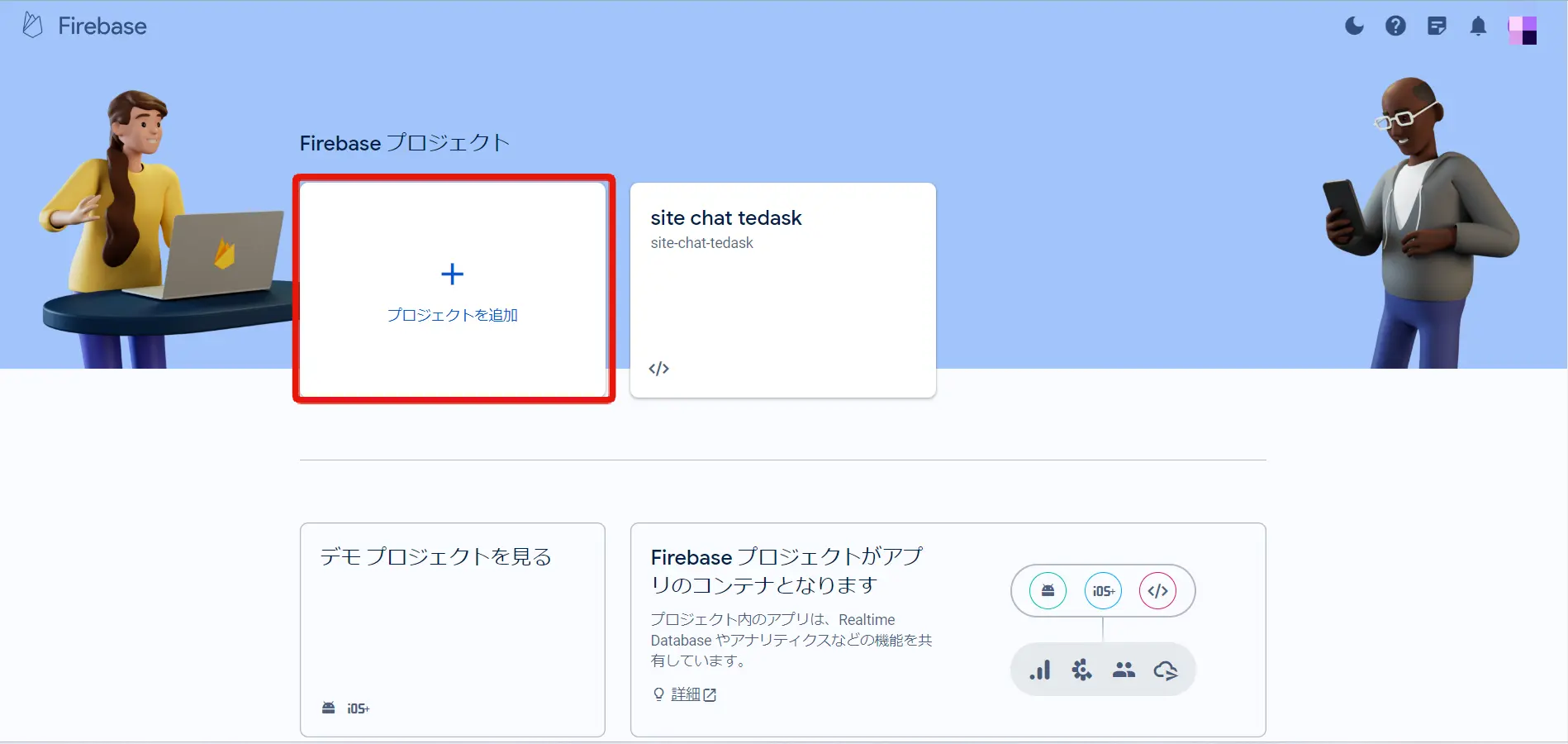 次にFirebaseの管理画面に入ってプロジェクトを作成します。