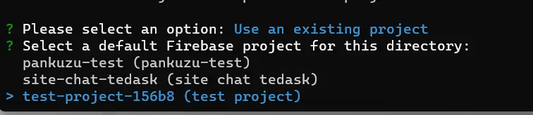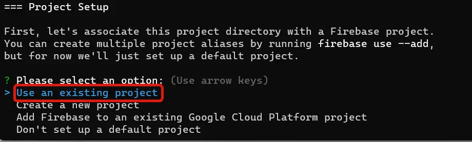 すでにプロジェクトを作成しているものを使うので「Use an existing project」を選択して、エンターをします。