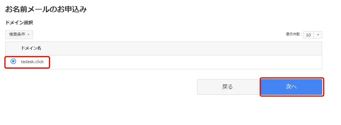 対象のドメインが間違っていないことを確認して「次へ」をクリックします。