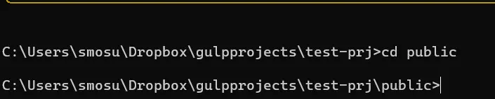 Windowsコマンドプロンプトを開いて、作業ディレクトリに移動します。node.jsを使ってWEB制作をしているディレクトリがあればそちらに移動しても良いです。