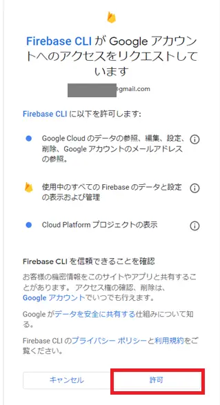 するとGoogleのアカウントの承認画面が表示されますので「許可」をクリックします。
