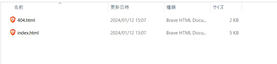 Publicの中を見ると「index.html」と「404.html」が入っていますので、index.htmlを今回用意したindex.htmlと置き換えます。
