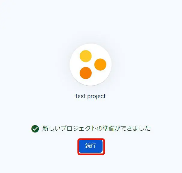 「続行」をクリックして、プロジェクトの作成を完了します。