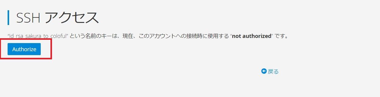 その後にアップロードした「id_rsa_sakura_to_colorful」のパーミッションの変更を設定します。