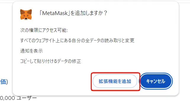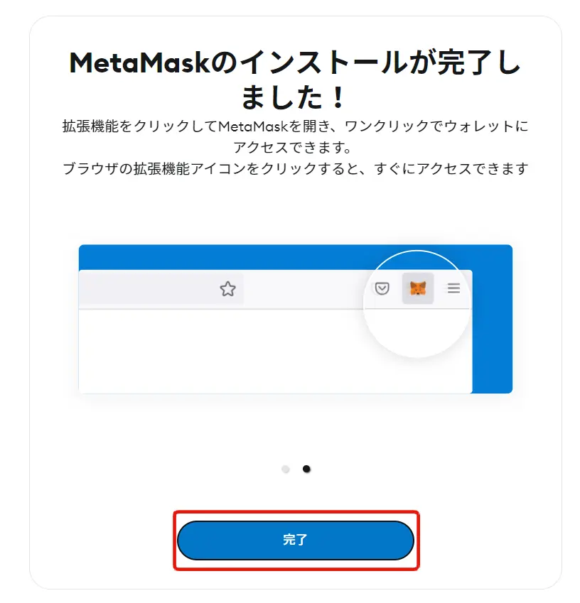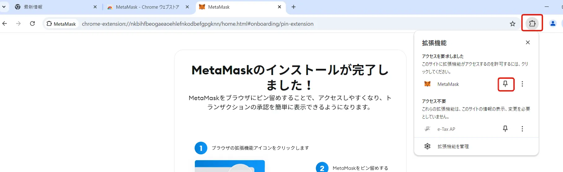先ほどピン留めしたMetaMaskのアイコンをクリックします。
