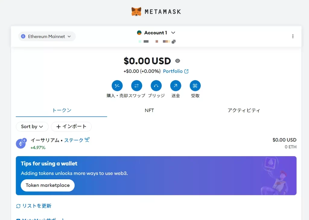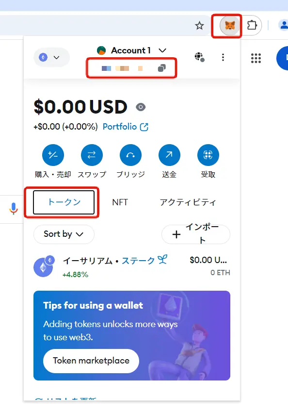 無事MetaMaskのウォレットが作れたところで、普段はどうやってウォレットの中身を確認するか見ていきます。