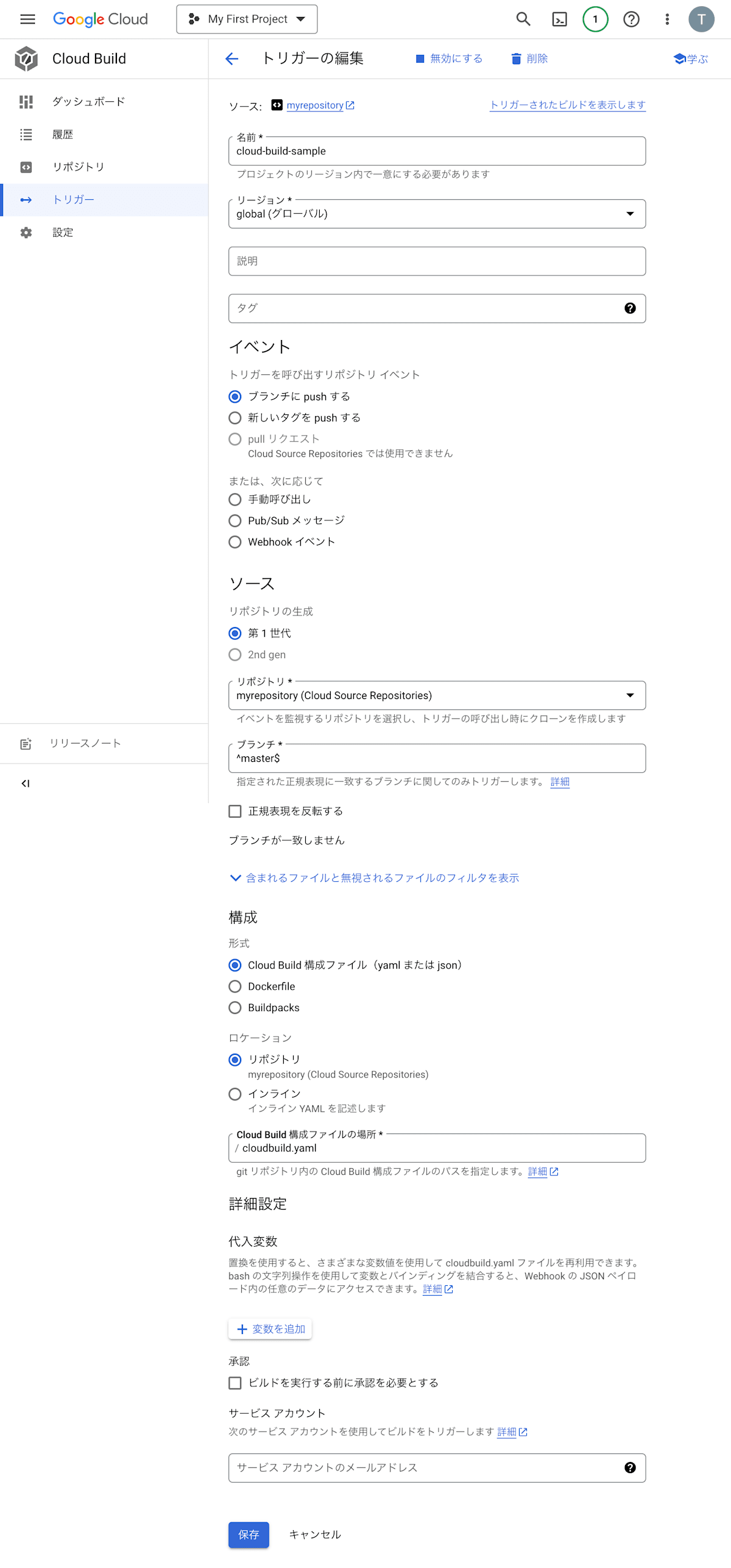また、Cloud Buildのドキュメントが参考になるかと思います。