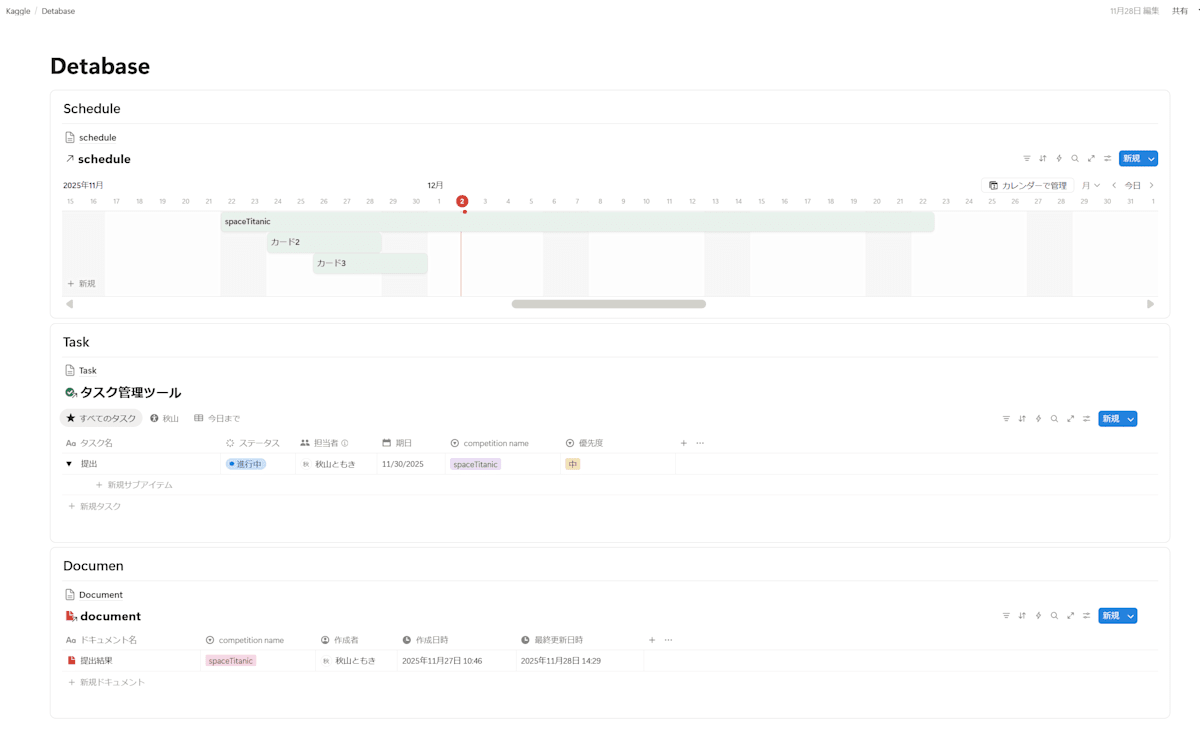 DetabaseDBを作成(項目:Space Titanic, 家計簿アプリ開発, etc...) -