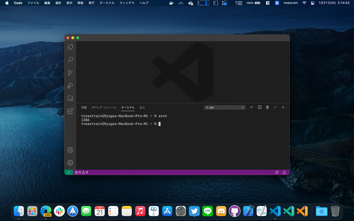 - Intel ビルドな Visual Studio Code ではターミナルのアーキテクチャが