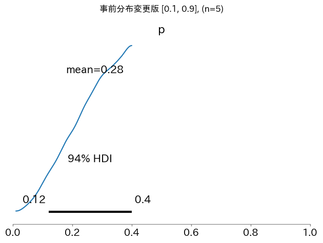 plt.suptitle("事前分布変更版 [0.1, 0.9], (n=5)")