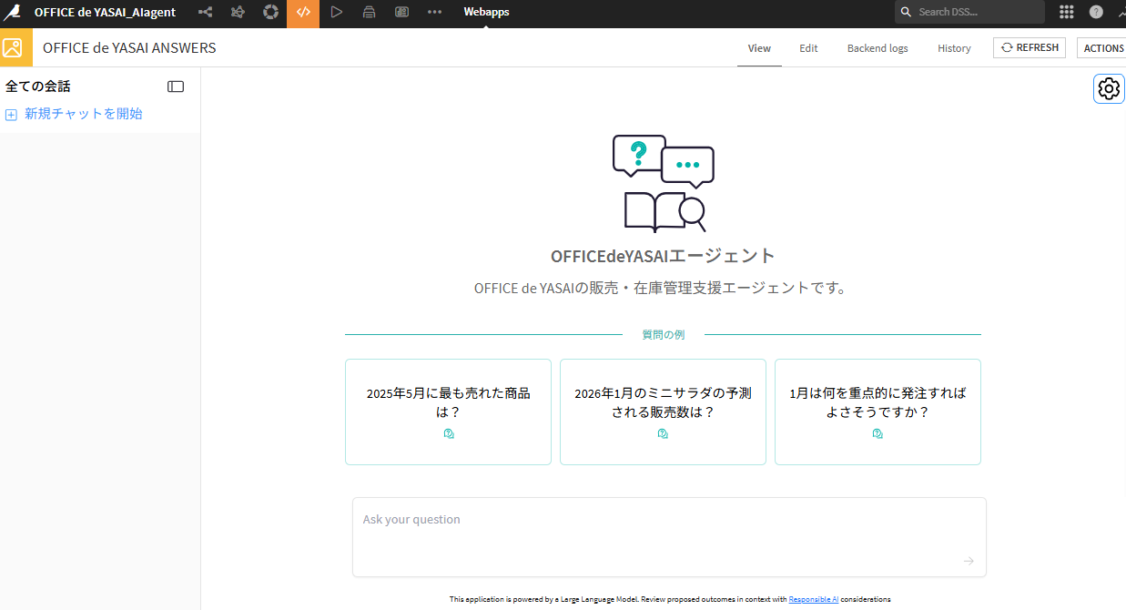 dataikuで「生成AIエージェント」機能がとても充実してきている、ということで、OFFICE de YASAIで試してみました。