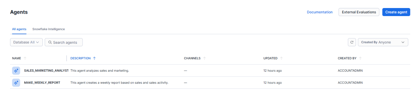 1のエージェントはSnowflake公式のSnowflake Intelligence QuickStartで簡単に作れるので、流用させていただきます。