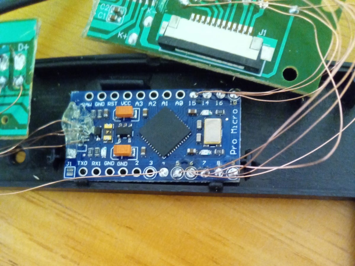 元のケースとの隙間に Pro micro を置き、上から基板を載せます。
