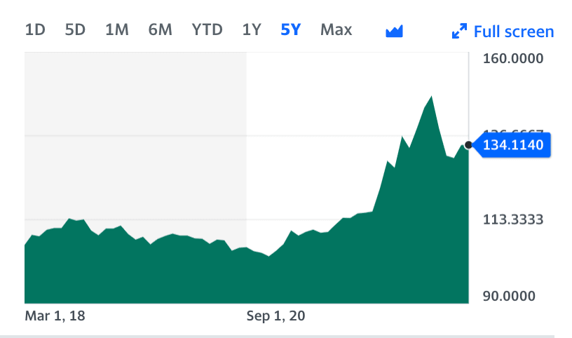 ドル円5年チャート