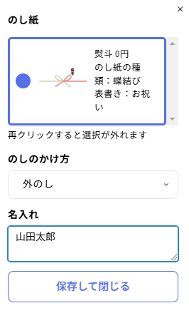 「のし紙」をクリックすると、熨斗紙の選択画面が表示されます。