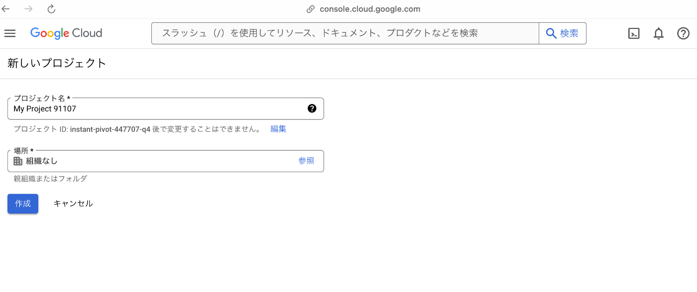 GoogleCloudアカウントで新しいプロジェクトを作成