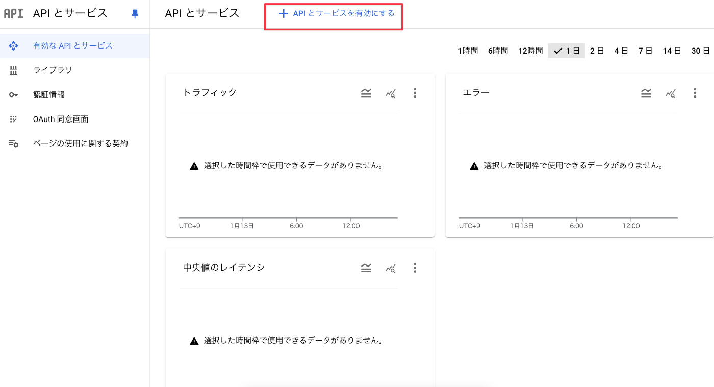 「APIとサービスを有効にする」を選択
