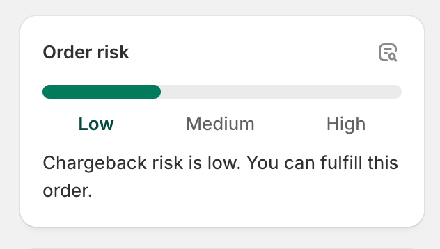Shopifyには不正検知・解析機能が標準で備わっており、怪しい注文を自動的に判別して管理者に警告してくれます。注文が行われるとシステムが様々な要素を分析し、リスクレベルを「低・中・高」の3段階で評価します。例えば、注文に使用されたクレジットカードの住所確認(AVS)結果や、セキュリティコード(CVV)の一致状況、注文に使用されたIPアドレスの所在地情報、短時間で複数のカードが試みられていないか、といった指標がチェックされています (Shopifyヘルプセンター | 不正解析)