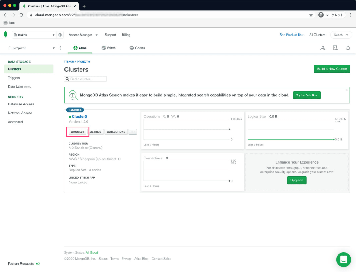 MongoDB Atlasの無料クラスタでMongoDBサーバーを使ってみる