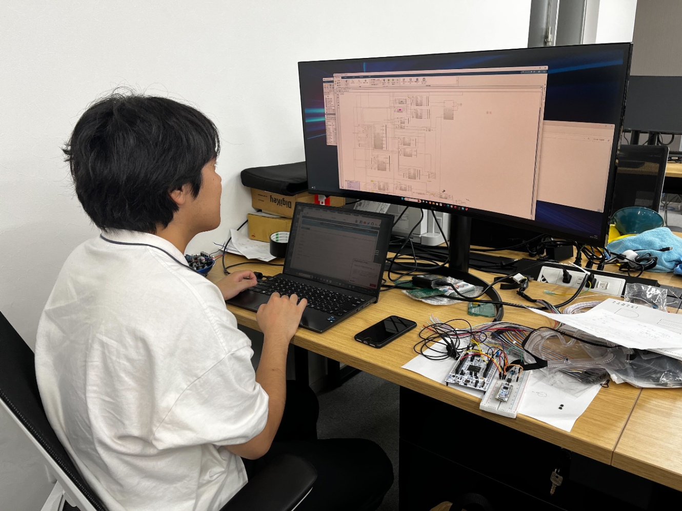Turing社内で冗長な制御システムの開発をしている様子