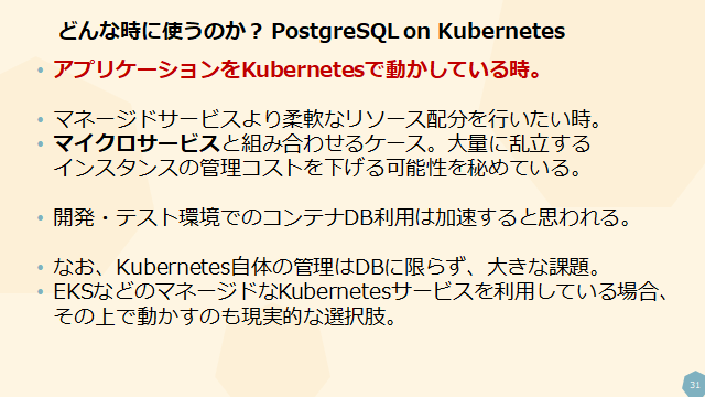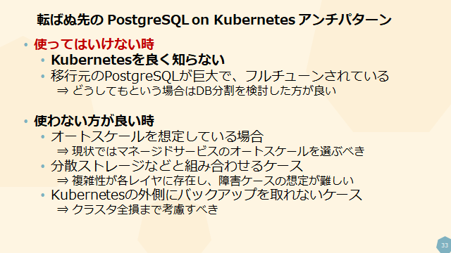 - PostgreSQL on Kubernetesを使うと良いケース、ダメなケース