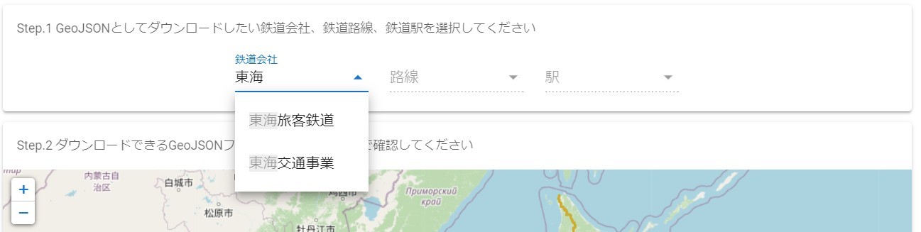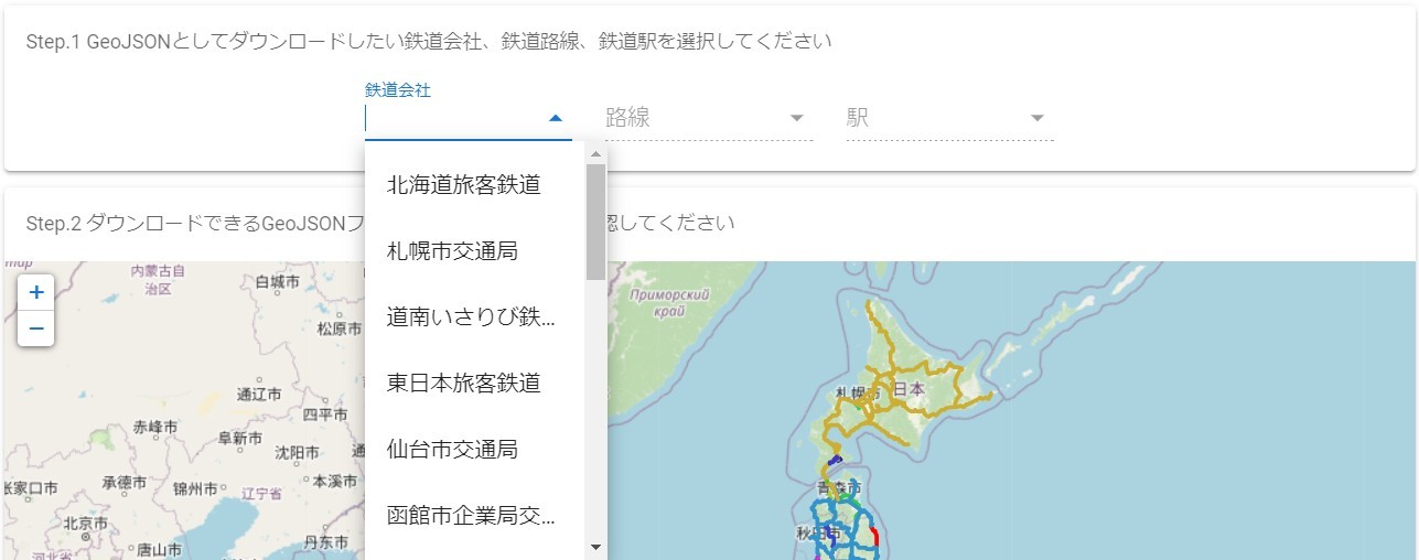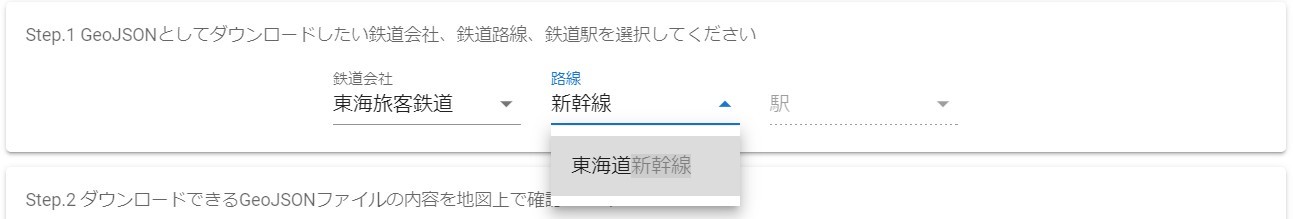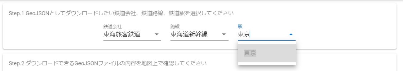 - Step.1 でダウンロードしたい鉄道会社、鉄道路線、鉄道駅を選択