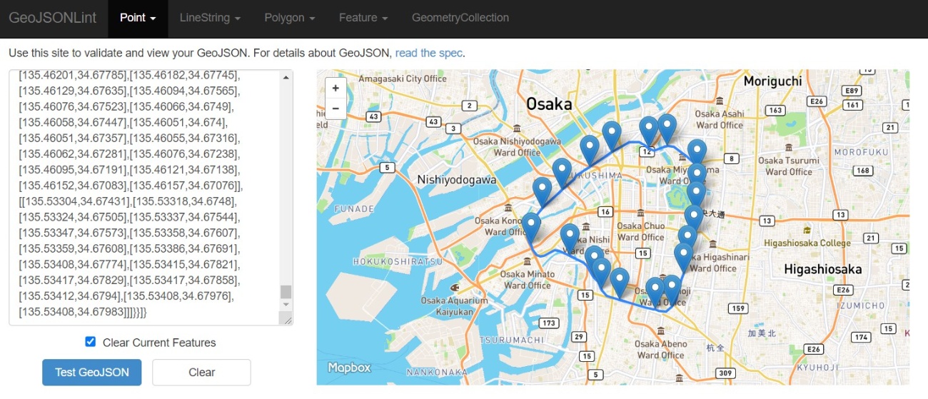 geojsonlit.com に読み込ませてみると、以下のように表示されます。
