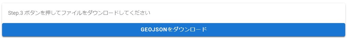 Step.1、Step.2 が終わったら、「GEOJSONをダウンロード」ボタンをクリックしてください。