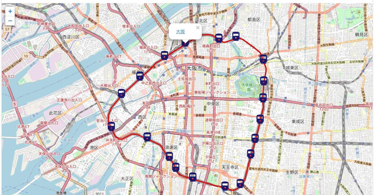 「東海道新幹線」をクリックすると、以下のように地図が更新されます。