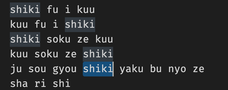 これらの変換にあわせて般若心経本体の音節表記も書き換えます。