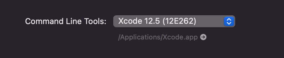XCodeを開いてPreferencesのLocationsのCommand Line Toolsを設定