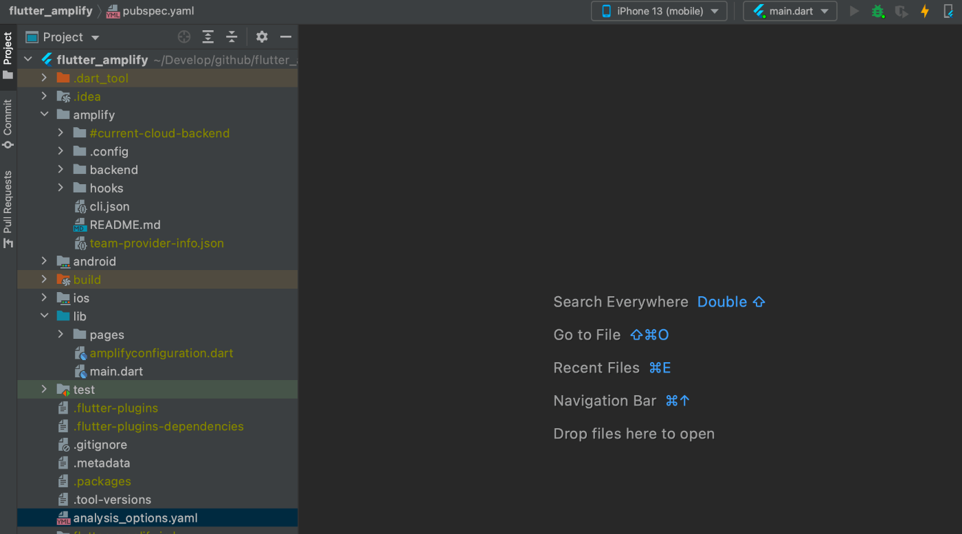 先程のamplify initでlibの直下にamplifyconfiguration.dartが作成されており、amplifyconfigを読み込む設定を行います。