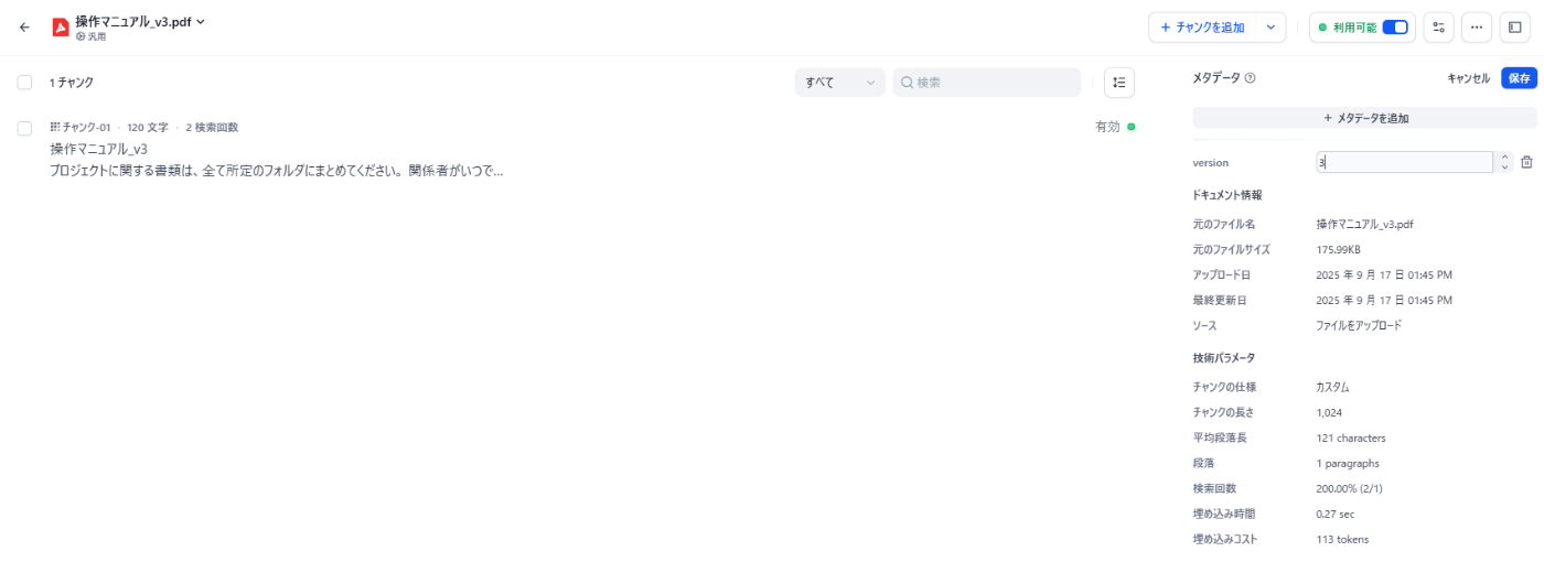 1. メタデータを付けたいドキュメント(例: 操作マニュアル_v3.pdf