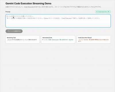 Executionのあり/なしを切り替えながら、ストリーミング出力をブラウザ上で確認するためのシンプルなデモです。