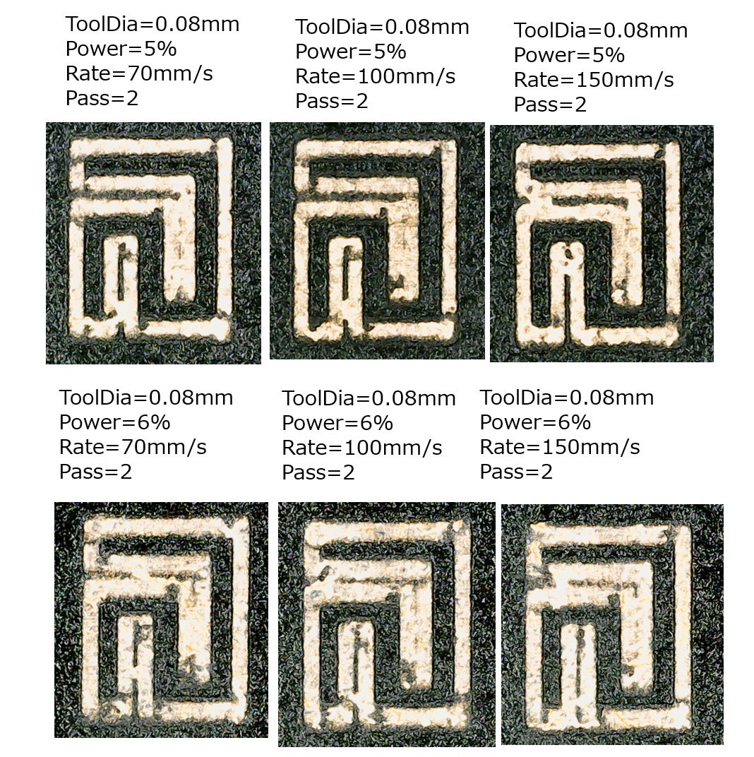 | Laser Power | 5% | 塗膜を焼くだけなので、5~10%で十分 |