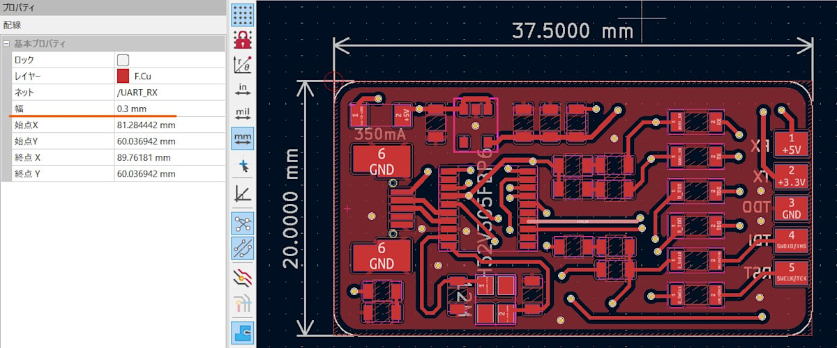 という観点で検証します。上記のPCBデータからガーバーデータを作成します。