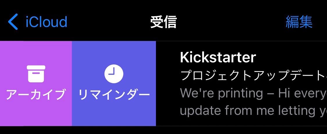 この環境の場合、iCloud Mailでは右スワイプが「アーカイブ」になっている