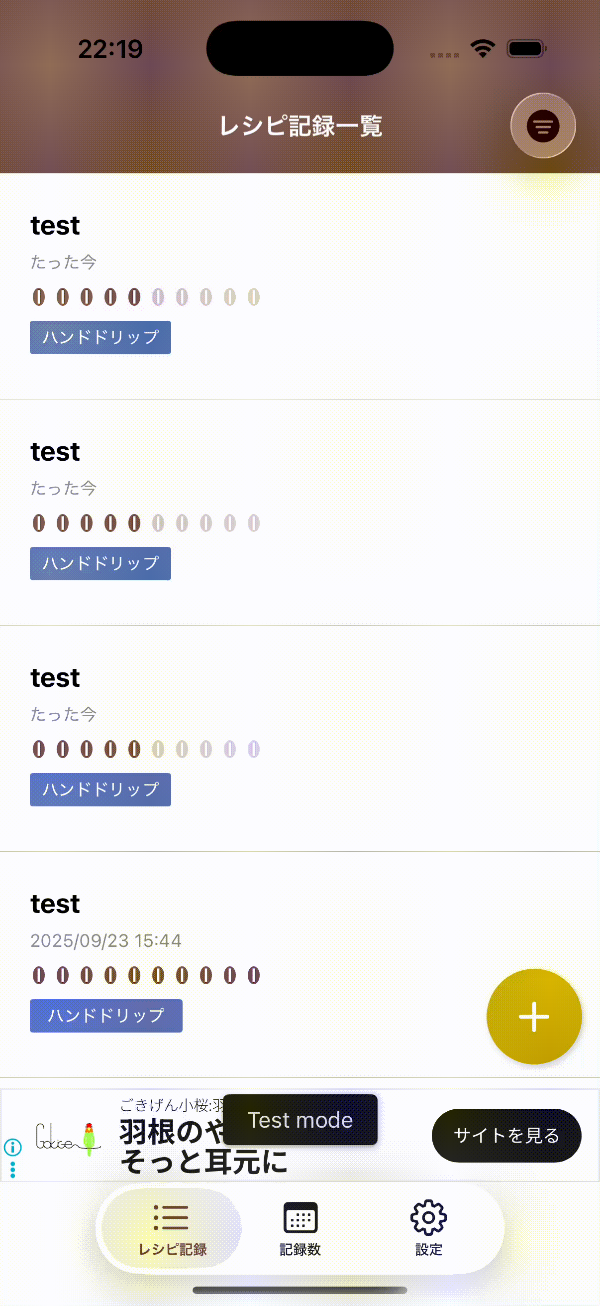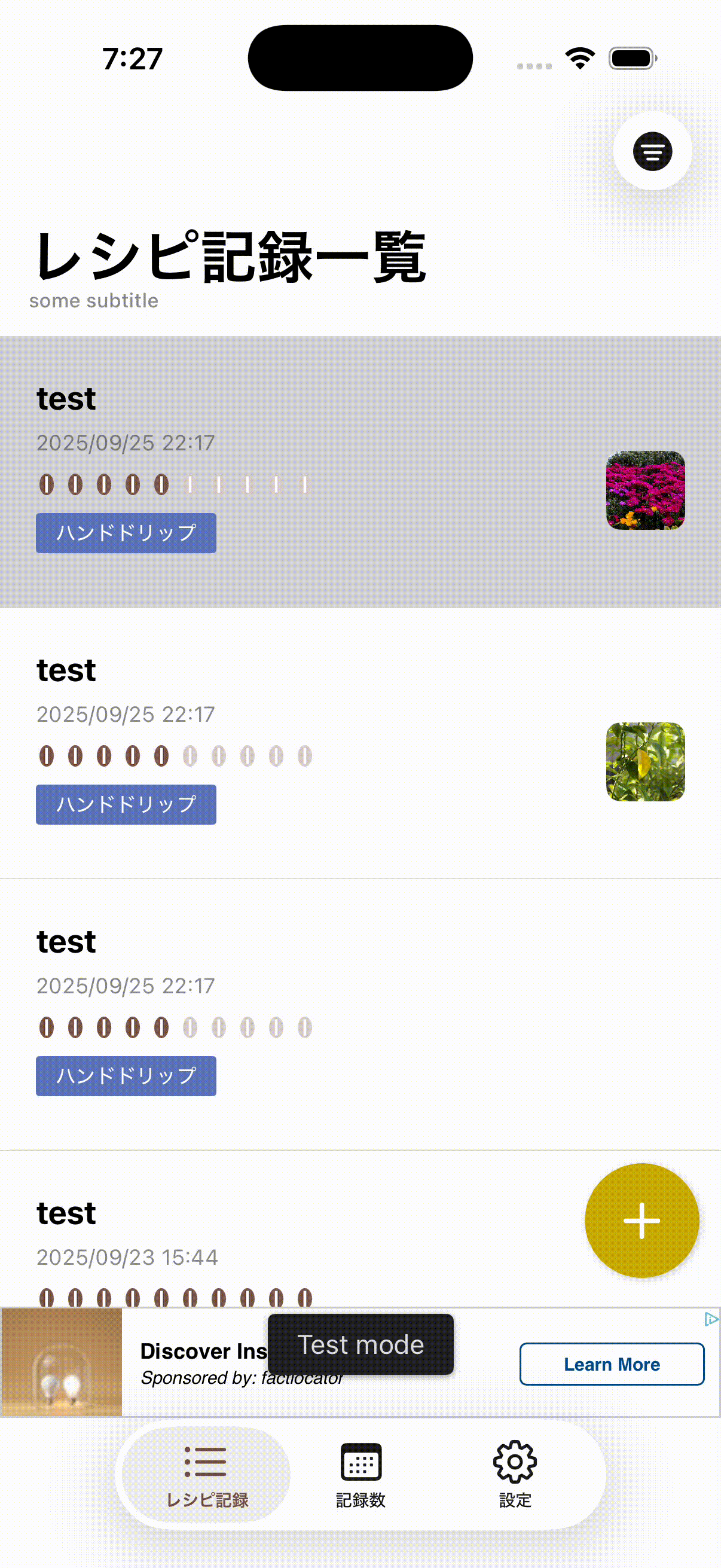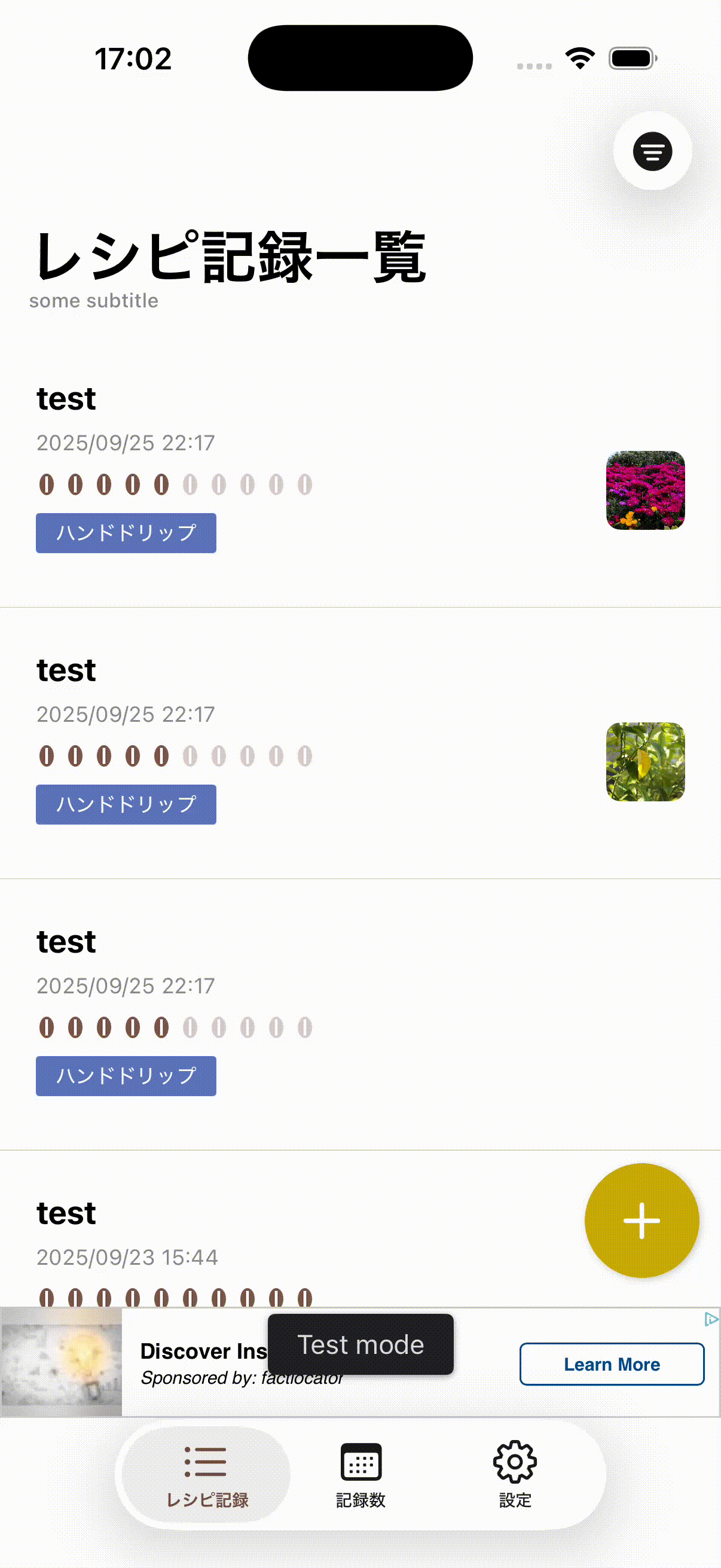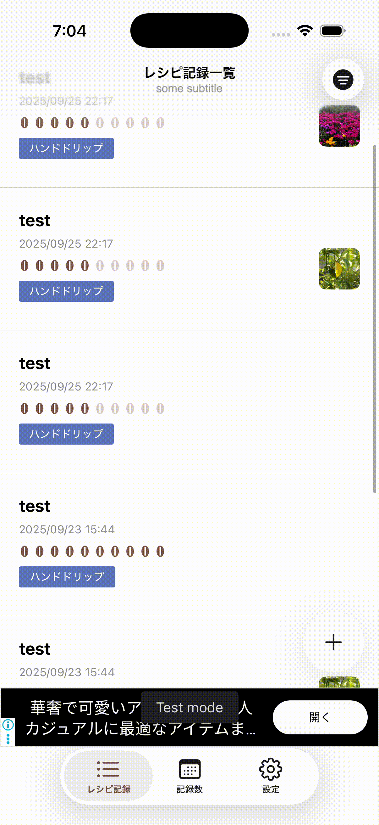 まずはXcode26でビルドしてみて、どんな感じになったか(Liquid Glass)のチェック。個人アプリなので良くも悪くも標準UIで済ませているので、大枠は変な感じはない。