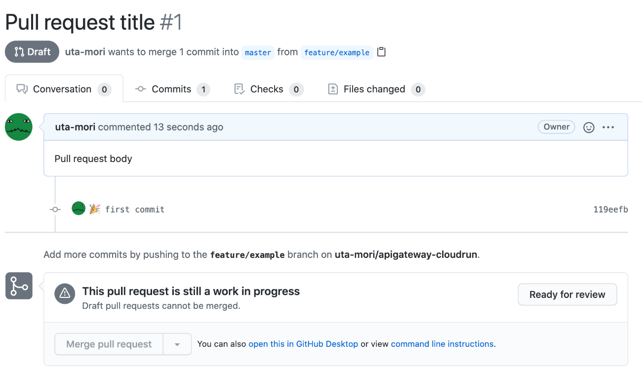 これで、ドラフトPRが作成されます。