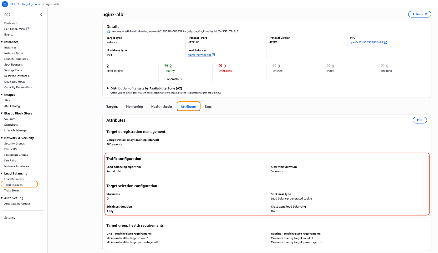 デフォルトでは、Application Load Balancer はラウンドロビンメソッドを使用して、送信先ターゲットグループの EC2 インスタンスにリクエストをルーティングします。