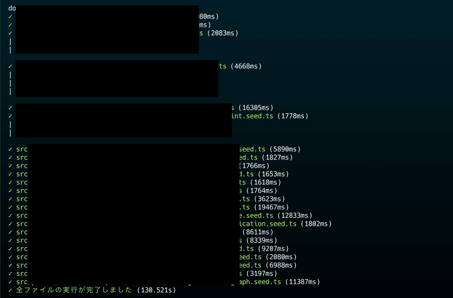 当初、1つのseedファイルのパフォーマンスを改善するのみだったはずが、少し大掛かりになってしまいました。しかし、結果として、seedデータの作成がかなり短縮され、開発におけるストレスが少し減らすことができました。